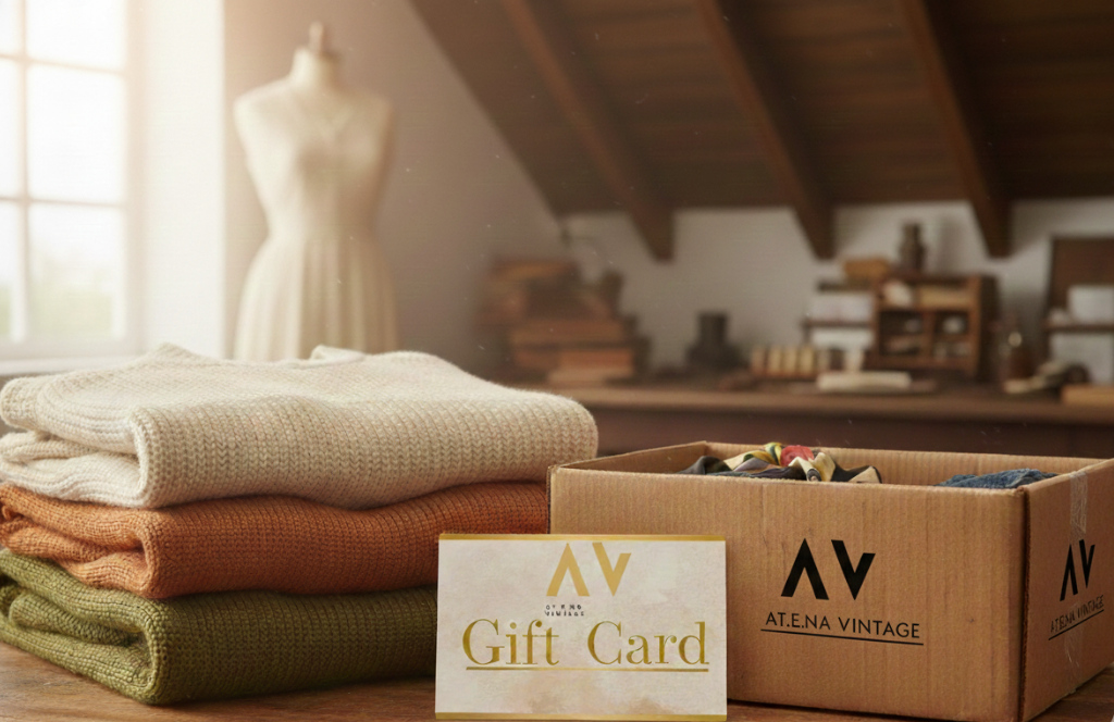Con la Gift Card AT.E.NA VINTAGE, chi la riceve potrà scegliere il proprio pezzo unico, tra moda e tesori second hand.